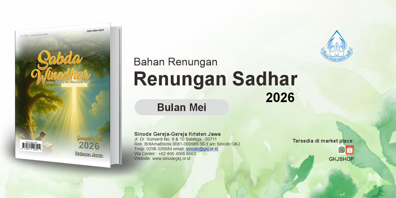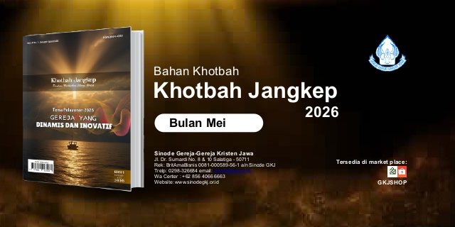Panduan Merayakan Liturgi Gereja Tema Tahun 2026“Gereja yang Dinamis dan Inovatif” Klik disini untuk mengunduh Bahan Khotbah Jangkep KHOTBAH JANGKEP 2026 – IPanduan Merayakan Liturgi GerejaDiterbitkan Oleh:Yayasan Taman Pustaka Kristen Indonesia(Anggota IKAPI)Jl. dr. Wahidin Sudirohusodo No. 38A Yogyakarta 55222Telp./Fax.: (0274) 512449; HP/WA: 087838211445E-mail: penerbit@tamanpustakakristen.comWebsite: www.tamanpustakakristen.comBekerjasama dengan:Sinode Gereja-gereja Kristen JawaJl. Dr. Sumardi No. 8 & 10 Salatiga 50711Telp: 0298.326684 Email: sinode@gkj.or.id WA Center: +62 856 4066 6663Website: www.sinodegkj.or.id Bagi Bapak/Ibu/Saudara yang tergerak untuk mendukung pelayanan Sinode GKJ, persembahan dapat disalurkan melalui rekening berikut: Rek: BritAmaBisnis 0081-000589-56-1 a/n Sinode GKJTelp: 0298.326684 Email: sinode@gkj.or.id WA Center: +62 856 4066 6663Website: www.sinodegkj.or.id Penanggung Jawab : Bapelsin XXIX GKJ Bidang PWGPdt. Erni Ratna YunitaPdt. Sih Ell MirmaningrumPdt. Kristin AndiniPenulis : Pdt. Marya Sri Hartati (GKJ Joglo)Pdt. Wiji Astuti (GKJ Salatiga)Pdt. Hizkia Fredo Valerian (PPK YAKKUM)Pdt. Adhika Tri Subowo (GKJ Wates)Pdt. Damar Kinandi Putera (GKJ Kroya)Pdt. Mardita Ganda Kusuma (GKJ Ngempon)Pdt. Yosef Krisetyo Nugroho (GKJ Wirobrajan)Pdt. Ageng Prasetya Raharjo (Bapelsin Bidang KesPel)Editor : Pdt. Rian Pandu Bagaswara (GKJ Wedi)Pdt. Erni Ratna Yunita (Bapelsin Bidang PWG)Tata letak dan Sampul : PDILM Sinode GKJVol. 4 No. 1 Januari-Juni 2026ISSN 2964-4232