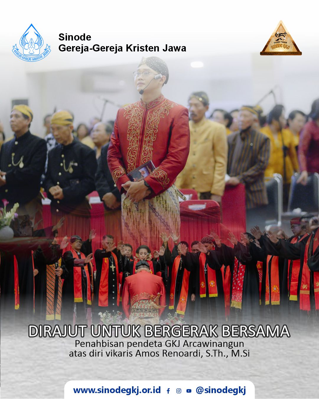 Penahbisan pendeta GKJ Arcawinangun atas diri vikaris Amos Renoardi, S.Th., M.Si telah dilaksanakan pada hari Senin 13 April 2026 bertempat di gedung GKJ Arcawinangun. Ibadah penahbisan dilayani oleh Pdt. Maria Puspitasari (GKJ Purwokerto) sebagai pendeta konsulen dan dihadiri oleh para pendeta lingkup GKJ Klasis Banyumas Utara, pendeta tamu, visitator Sinode GKJ serta para tamu undangan. Dalam khotbah sulungnya, Pdt. Amos Renoardi, S.Th., M.Si mengusung tema: ”Dirajut Untuk Bergerak Bersama” didasarkan pada bacaan Efesus 4: 11-16, yang mengajak para warga gereja dan rohaniawan (pendeta, penatua, diaken) untuk bersinergi menjalankan fungsi dan peran masing-masing dalam membangun kehidupan bergereja.