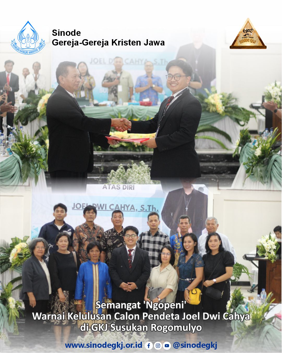 “Semangat ‘Ngopeni’ Warnai Kelulusan Calon Pendeta Joel Dwi Cahya di GKJ Susukan Rogomulyo” Rogomulyo, 25 April 2026 – Majelis Gereja Kristen Jawa (GKJ) Susukan sukses menyelenggarakan Persidangan Klasis Istimewa Gereja-gereja Kristen Jawa Klasis Salatiga Bagian Selatan (KSBS). Persidangan yang bertempat di GKJ Susukan ini dilaksanakan dalam rangka Ujian Calon Pendeta (peremptoir) atas diri Sdr. Joel Dwi Cahya, S.Th.Panggilan untuk “Ngopeni” Rangkaian acara diawali dengan Ibadah Pembukaan yang dipimpin langsung oleh Sdr. Joel Dwi Cahya pada pukul 08.00 WIB. Mengambil tema “Ngopeni” yang berdasar pada Kisah Para Rasul 2: 41-47, ibadah ini menekankan esensi pelayanan bukan sekadar memimpin, melainkan merawat, memperhatikan, dan mendengarkan umat dengan hati.Pembukaan dan Persidangan Pleno Hadir dalam persidangan ini para utusan, di antaranya:Visitator dari Badan Pelaksana Sinode XXIX GKJ (Pdt Riagung dan Pdt. Nelwan) .Badan Pelaksana Klasis (Bapelklas) dari Klasis Salatiga Bagian Utara dan Klasis Boyolali sebagai klasis tetangga.Bapelklas dan Bawasklas KSBS XIII.Tim Pembimbing dan Tim Penguji.Utusan utama dan pengganti dari 11 gereja di wilayah Klasis Salatiga Bagian Selatan.Ujian Komprehensif Calon Pendeta Memasuki agenda utama, Sdr. Joel Dwi Cahya menjalani serangkaian ujian lisan di hadapan para penguji. Materi ujian meliputi empat bidang utama sesuai tata urutan persidangan:Ujian Khotbah: Pendalaman materi oleh Pdt. Nugroho Wisnu Tri Sasongko.Ujian Pokok-Pokok Ajaran (PPA) GKJ: Diuji oleh Pdt. Sari Frihono.Ujian Tata Gereja dan Tata Laksana (TGTL) GKJ: Diuji oleh Pdt. Prasetyawan Koesworo.Ujian Sejarah Gereja: Diuji oleh Pdt. Hananto K.Sesuai tata tertib, penilaian dilakukan secara kualitatif berdasarkan hasil kuantitatif dengan bobot 60% dari Penguji Pertama (Tim Pembimbing) dan 40% dari Penguji Kedua (Utusan Utama dan Visitator). Hasil dan Penutup Setelah melalui Persidangan Pleno Tertutup untuk pembahasan hasil, pimpinan persidangan menyampaikan hasil ujian dalam Pleno Terbuka. Acara diakhiri dengan pembacaan serta penandatanganan Surat Keputusan Persidangan dan Surat Janji Calon Pendeta bagi mereka yang dinyatakan “Layak Tahbis”. Di sela percakapan Pdt Timotius Trimin menyampaikan: “Kami mengucap syukur kepada Sang Kepala Gereja, Yesus Kristus, atas kelancaran Sidang Istimewa ini, berharap untuk kegiatan serupa di klasis Salatiga bagian Selatan berjalan lebih baik”.Persidangan ditutup dengan penuh syukur pada sore hari, diiringi doa penutup dan harapan agar pelayanan Sdr. Joel Dwi Cahya ke depan senantiasa dalam tuntunan Roh Kudus untuk kemuliaan nama Tuhan.