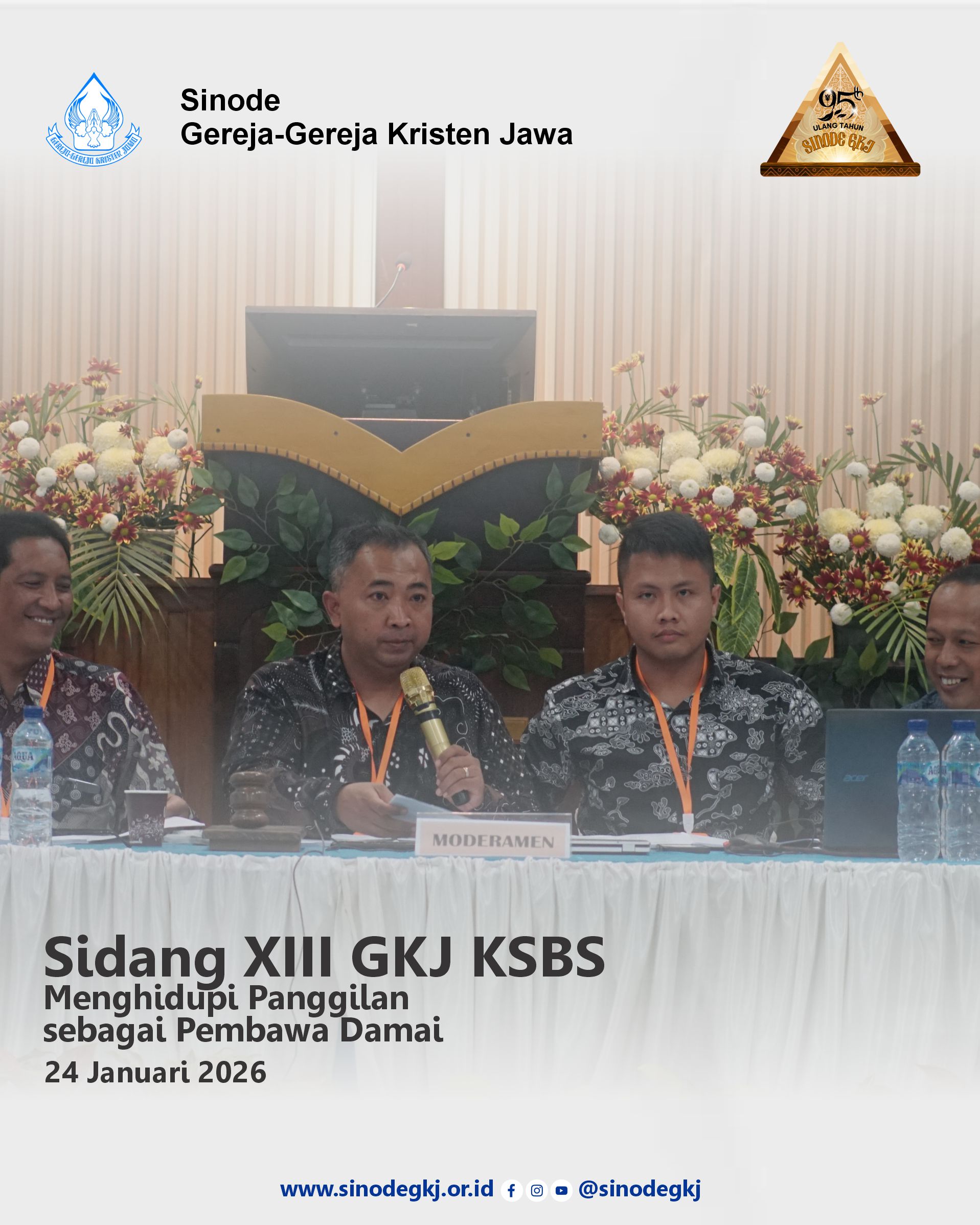 Sabtu, 24 Januari 2026. Hawa dingin dan sesekali hujan rintik di Randuares menghadirkan suasana sejuk. Kala itu, Sidang XIII Gereja-gereja Kristen Jawa (GKJ) Klasis Salatiga Bagian Selatan (KSBS) berlangsung. Sidang yang berlangsung di GKJ Randuares sebagai gereja penghimpun ini membahas berbagai pergumulan pelayanan di lingkup KSBS. Sidang tersebut diawali dengan ibadah yang dilayankan oleh Pdt. Adi Setyo Kristianto. Dalam refleksinya, Pdt. Adi mengajak gereja untuk tidak hanya menerima dan merasakan damai, tetapi mengingat panggilannya untuk menjadi pembawa damai. Sebagaimana Sabda Kristus: Berbahagialah orang yang membawa damai (Mat 5:9). Selain membahas pelayanan rutin, ada beberapa keputusan strategis yang diambil. Di antaranya adalah:– Dukungan terhadap Yayasan Perguruan Kristen Salatiga Pusat (YPKSP).– Persiapan sebagai salah satu klasis penghimpun Sidang Sinode XXX GKJ.– Diskusi bersama gereja-gereja tentang penyusunan anggaran yg berwawasan masa depan.– Diskusi bersama gereja-gereja tentang PPA dan TGTL GKJ.– Sosialisasi Iuran Tambahan DP GKJ. Hadir pula dalam persidangan tersebut visitator Sinode GKJ, yaitu Pdt. Stefanus Iwan Listyantoro dan Pdt. Dwi Argo Mursito. Dalam sambutannya, Pdt. Iwan menyampaikan pentingnya GKJ menghidupi tema sinode: Gereja yang Dinamis dan Inovatif, khususnya dalam rangka menghadapi tantangan pelayanan yang semakin kompleks. Sidang berlangsung lancar. Berakhir sekitar pukul 16:00 WIB. Tetap dengan suasana sore yang sejuk.